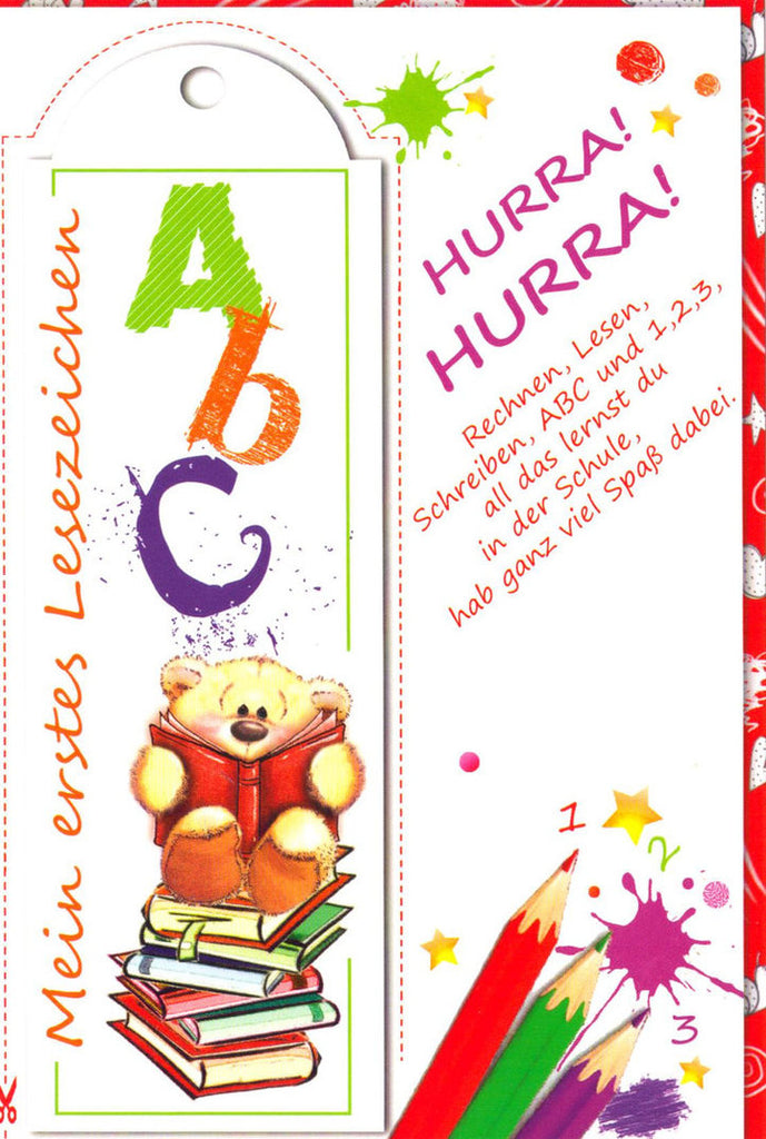 Glückwunschkarte Schulanfang mit Umschlag - Motiv Lesezeichen