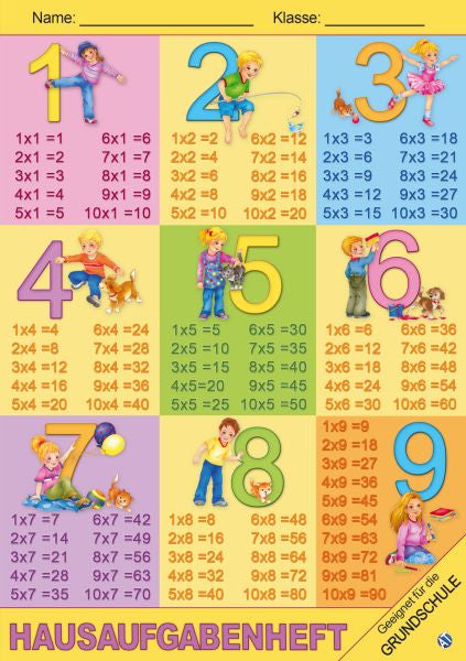 Hausaufgabenheft 1x1, A5 mit farbig hinterlegten Wochentagen