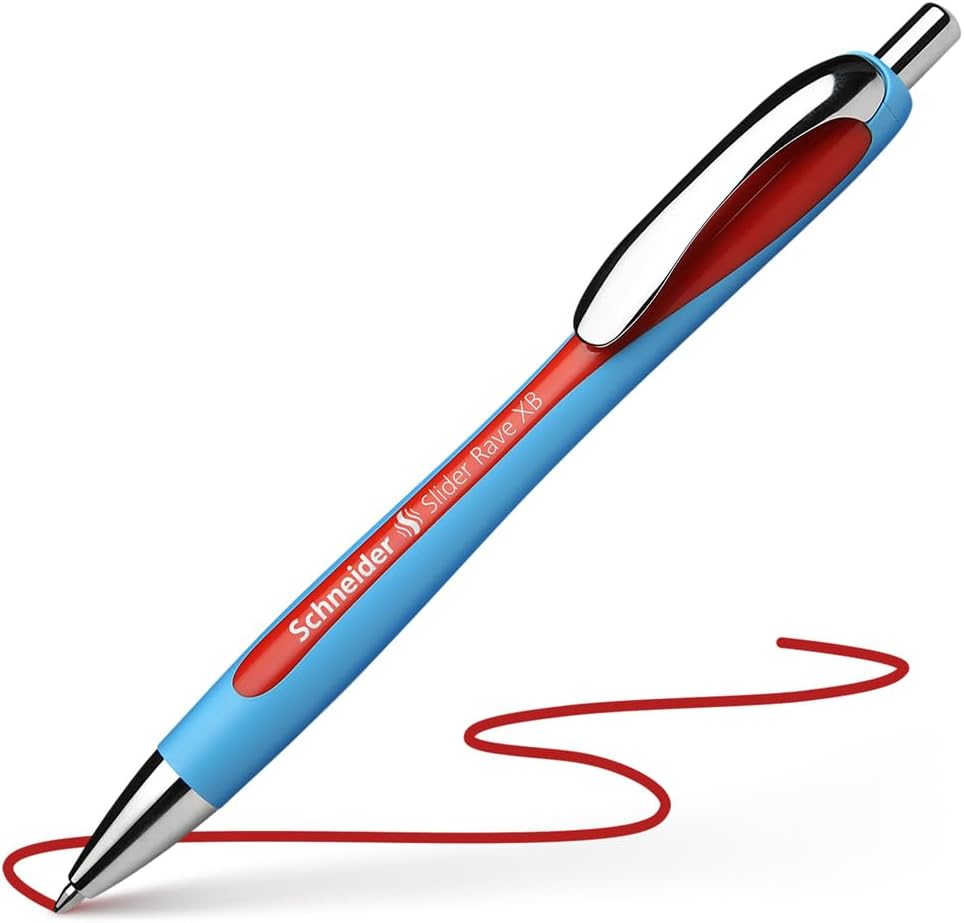 Kugelschreiber mit Viscoglide®-Technologie für außergewöhnlich weiches und gleitendes Schreiben in extrabreiter Strichstärke (XB). Der Slider Rave wird umwelt- und ressourcenschonend mit einem *Gehäuse aus 68 % recyceltem Kunststoff hergestellt. Schreibfarbe rot. Die auswechselbare Großraummine Slider 755 XB mit verschleißfester Edelstahlspitze garantiert, dass der große Pastenvorrat vollständig und schmierfrei genutzt werden kann. Die Schrift trocknet schnell - auch auf glattem Papier - und bleibt sogar bei anschließendem Markieren mit Textmarkern wischfest. Der Slider Rave ist durch das clevere Plug+Play-System mit verschiedenen Minenformaten nachfüllbar. Der ergonomisch geformte und großzügig gummierte Schaft ermöglicht eine entspannte und sichere Schreibhaltung ohne Ermüdung der Hand. Mit praktischem Clip aus stabilem Metall.- Marke: Schneider