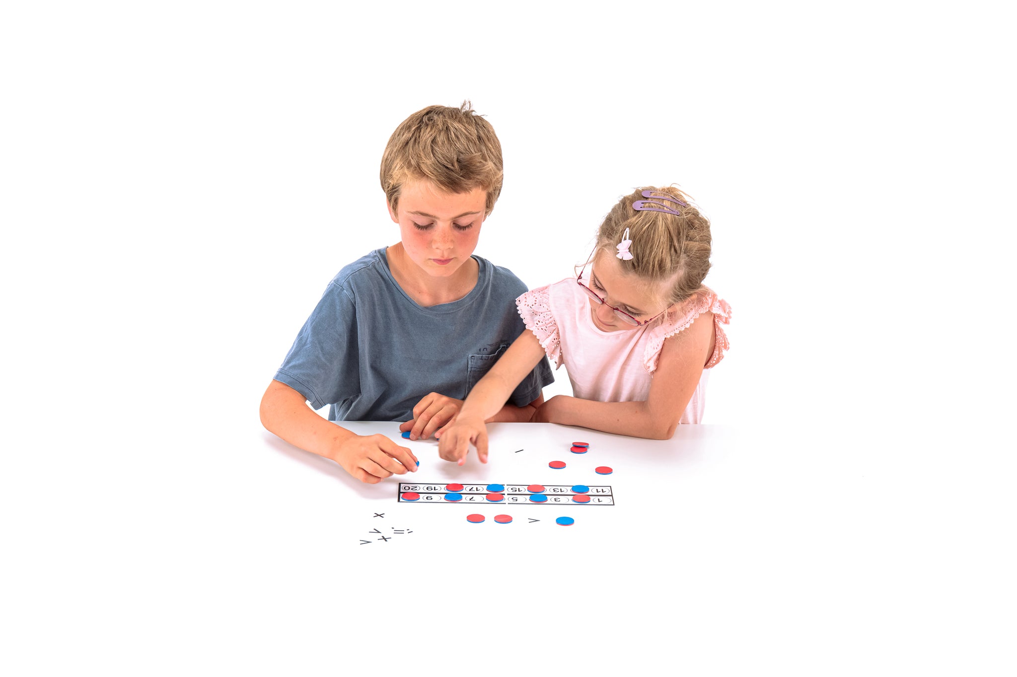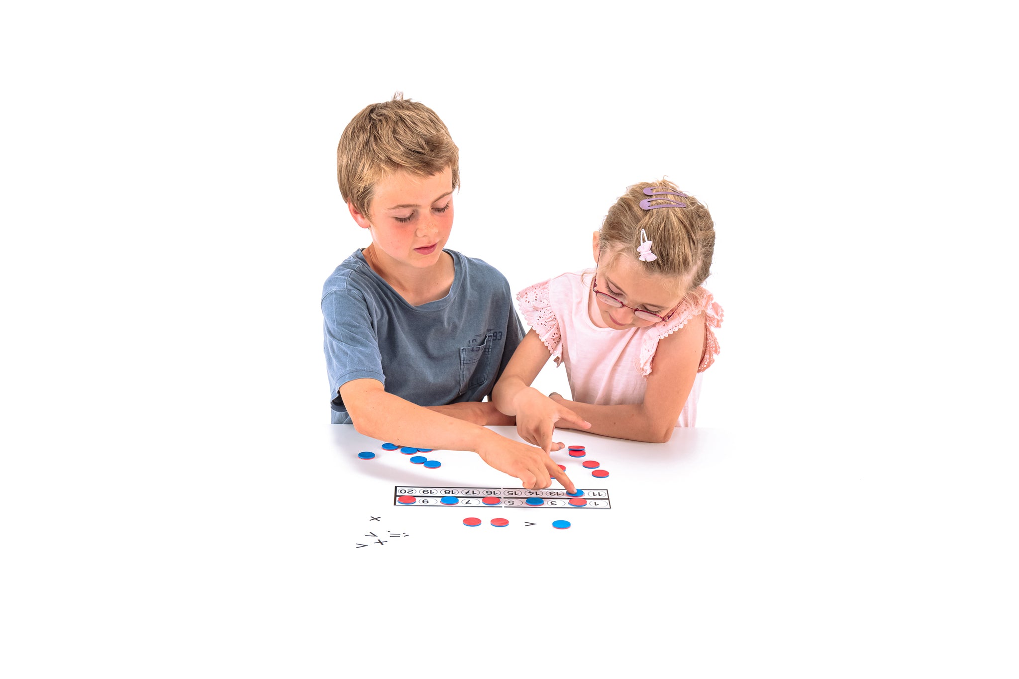 • mit den besonders gut greifbaren Wendeplättchen und den Rechenleisten lässt sich addieren, subtrahieren, Zahlenfolgen, Vielfache darstellen u.v.m.