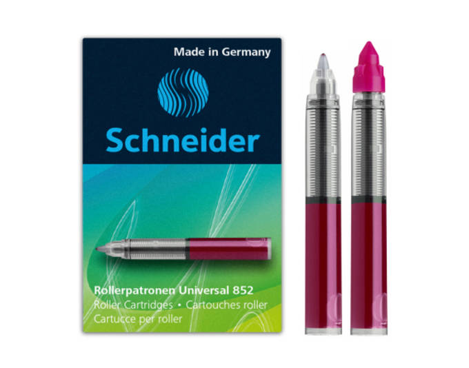 Fünf Rollerpatronen pink mit Kugelspitze für Schneider Breeze, Base Senso, Base Ball, ID Duo und für Modelle anderer Hersteller. Schreibt leicht, ist schnell trocken und verschmierfest sogar beim Überstreichen mit Textmarker. Der Tintenregler steuert den Tintenfluss exakt und gleichmäßig von Anfang bis Ende, ohne Kleckse, ohne Aussetzer.
