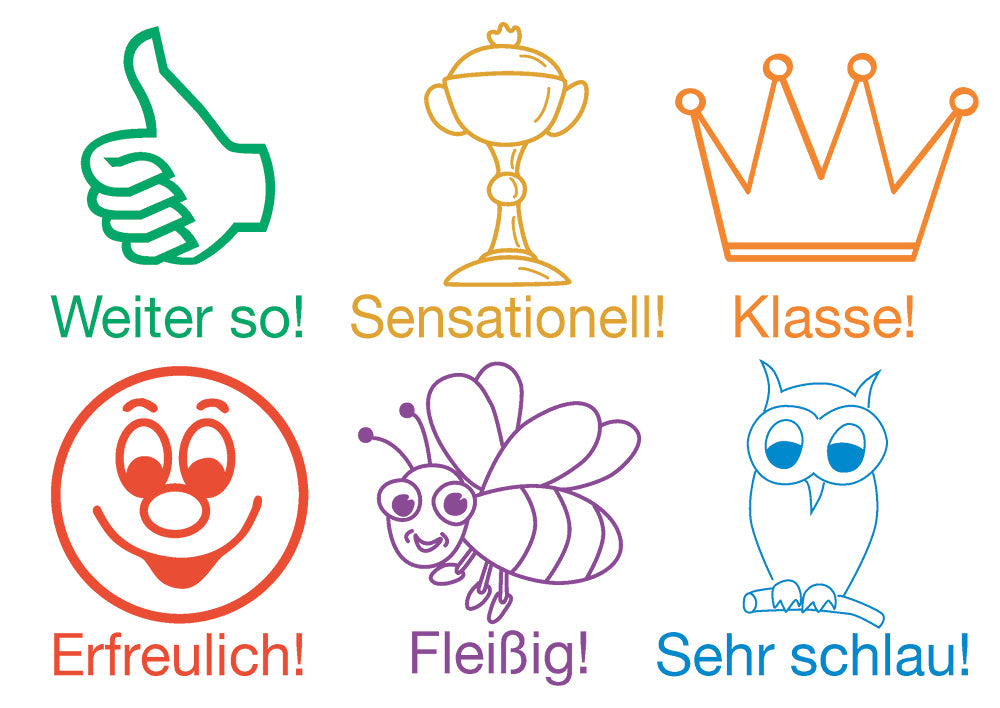 Lehrer-Stempel aus Holz "Motivation", 6-tlg., versch. Farben