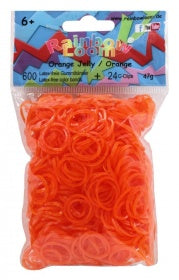 Rainbow Loom Latex-freie Gummibänder Orange Jelly Inh.: 600 Bänder + 24 C-Clips