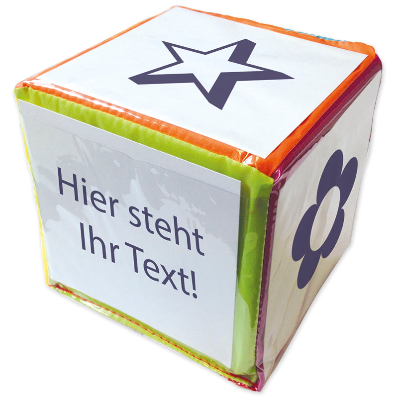 Dieser praktische, bunte Würfel ist universell einsetz- und gestaltbar.