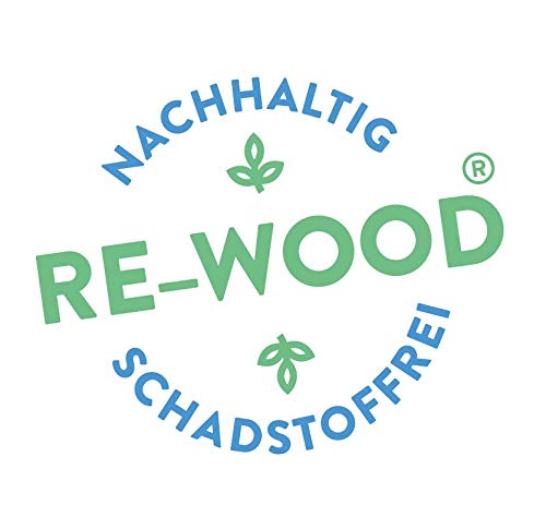 Das nachhaltige und ökologische RE-Wood-Material wird aus zerkleinerten Holzresten deutscher Produktion und einem Bindemittel im Verhältnis 80 zu 20 ressourcenschonend hergestellt. RE-Wood ist zu 100%-recyclebar, mit dem PEFC-Siegel zertifiziert und frei von Schadstoffen. Artikel aus RE-Wood sind stabil, leicht und besitzen eine hohe Gebrauchssicherheit.