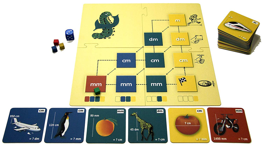 - 1 Spielbrett, 37 Aufgabenkarten, 4 Spielsteine, 1 Würfel, 1 Anleitung