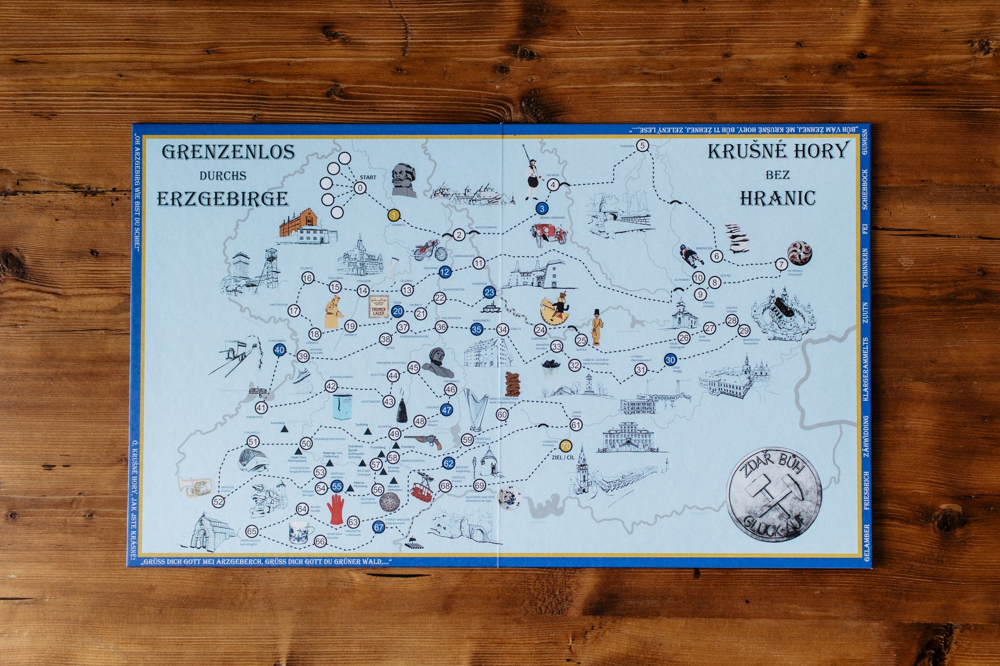 Das Spiel wird komplett zweisprachig deutsch und tschechisch aufgelegt. So wie es sich für ein tschechisch-deutsches Verlegerpaar gehört. Auf der böhmischen Seite erscheinen alle Ortsnamen in heutiger tschechischer sowie in der früheren deutschen Bezeichnung