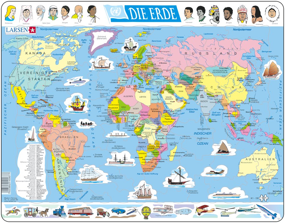Larsen Puzzle Die Erde (politische Weltkarte) 107-tlg.