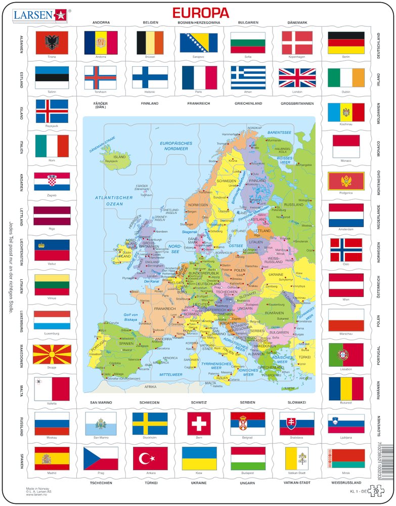 Larsen Puzzle - Europa, mit Länderflaggen