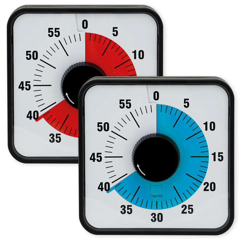 Die visuelle, analoge Darstellung der verbleibenden Zeit durch das farbige Feld vermittelt auf einen Blick die Zeit-Information, ohne dass die Konzentration von der eigentlichen Aufgabe abgelenkt wird. Außerdem hilft die visualisierte Zeit-Darstellung den Schülern, die Zeiteinteilung selbstverantwortlich vorzunehmen.