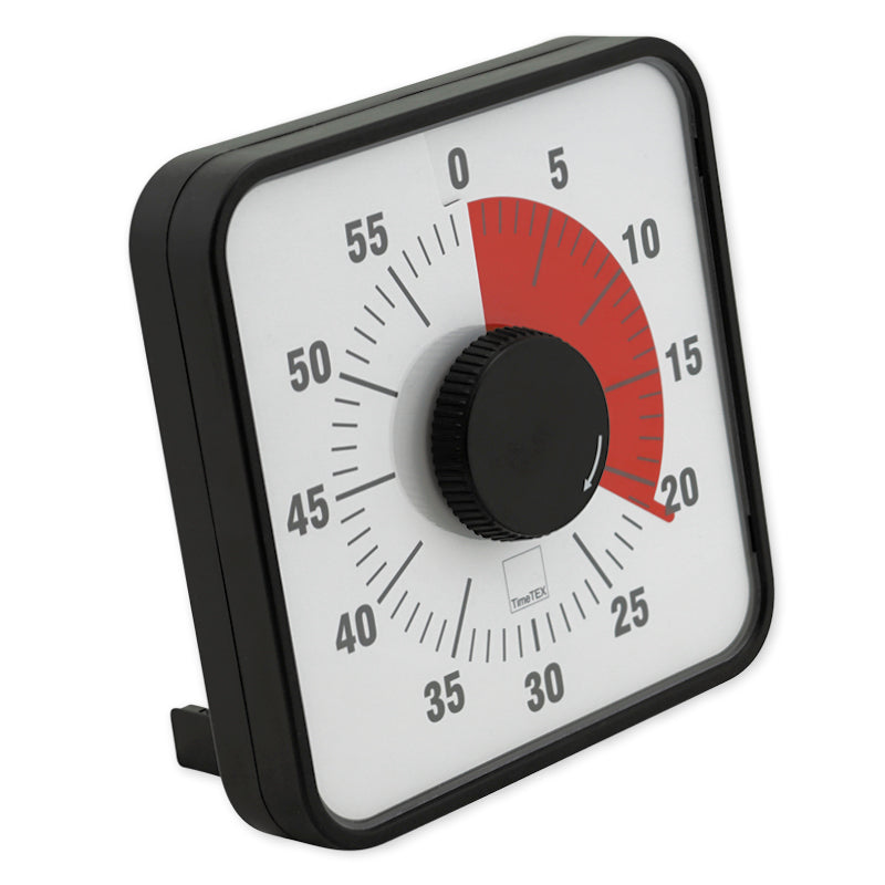 Die visuelle, analoge Darstellung der verbleibenden Zeit durch das farbige Feld vermittelt auf einen Blick die Zeit-Information, ohne dass die Konzentration von der eigentlichen Aufgabe abgelenkt wird. Außerdem hilft die visualisierte Zeit-Darstellung den Schülern, die Zeiteinteilung selbstverantwortlich vorzunehmen.