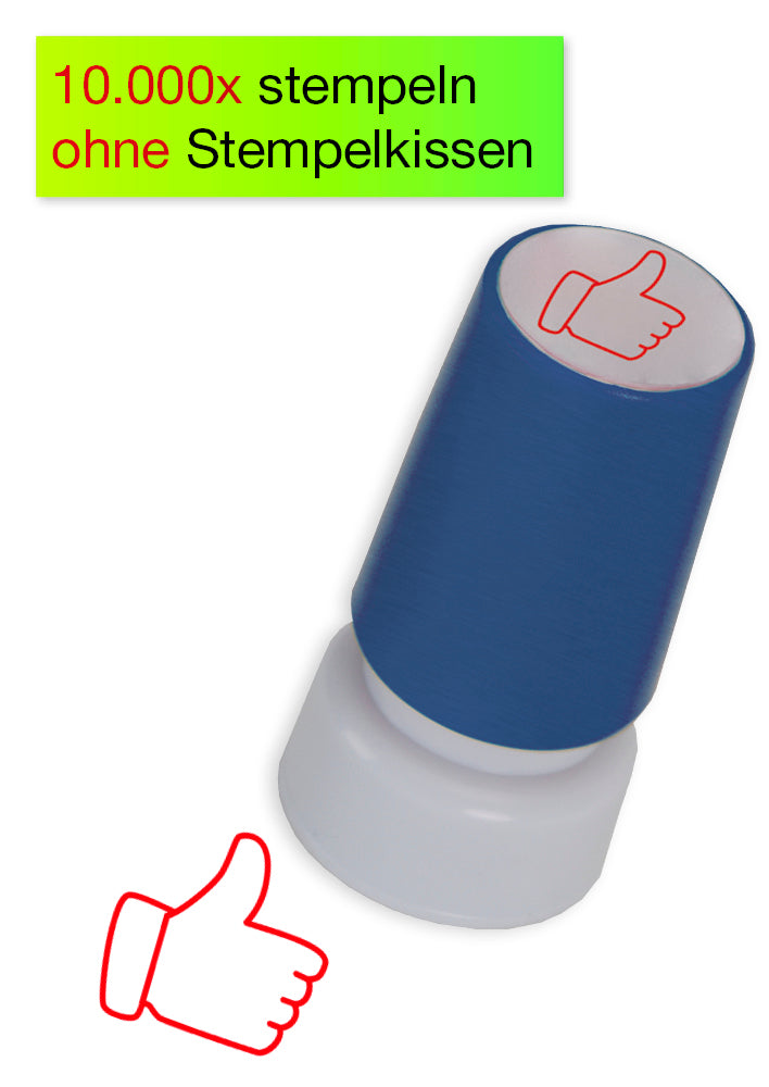 Das Ergebnis ist ein konturenscharfes Stempelbild. Diese Technik reicht für bis zu 10.000 Stempelvorgänge mit ein und demselben Stempel ohne Auffüllen. Die Stempel sind wiederbefüllbar.