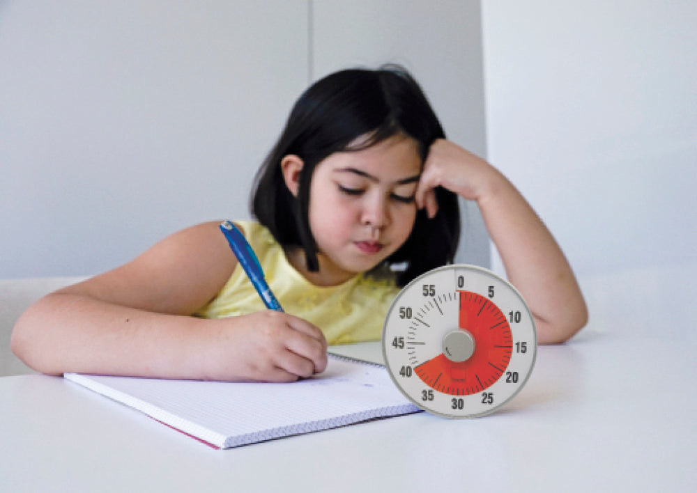 Die visuelle, analoge Darstellung der verbleibenden Zeit durch das farbige Feld vermittelt auf einen Blick die Zeit-Information, ohne dass die Konzentration von der eigentlichen Aufgabe abgelenkt wird. Außerdem hilft die visualisierte Zeit-Darstellung den Schülern, die Zeiteinteilung selbstverantwortlich vorzunehmen.
