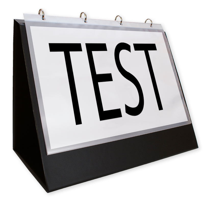 Bis zu 100 Blätter bzw. 50 Klarsichthüllen können in das Tisch-Flipchart eingehängt werden, im Lieferumfang sind 10 Prospekthüllen enthalten.